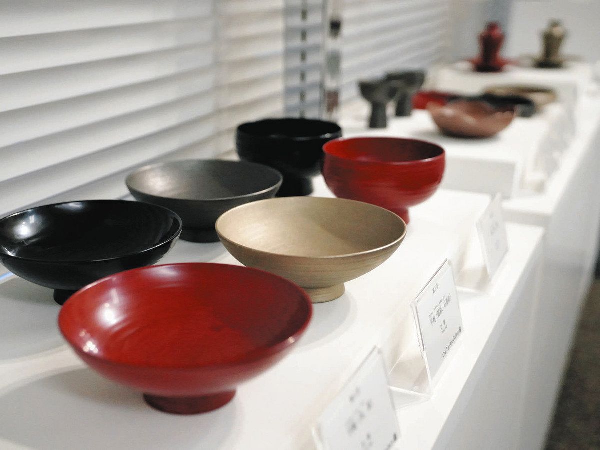 会場には輪島塗や八溝(やみぞ)塗、粟野春慶塗、秀衡塗、琉球漆器など、日本全国の代表的な漆芸を網羅的に紹介する63点を展示。このうち約40点で大子漆が使われているという。