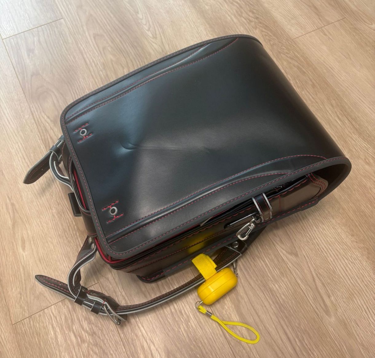 悠真君(仮名)のランドセル。これを背負って学校に戻る見通しは立っていない(母親提供)