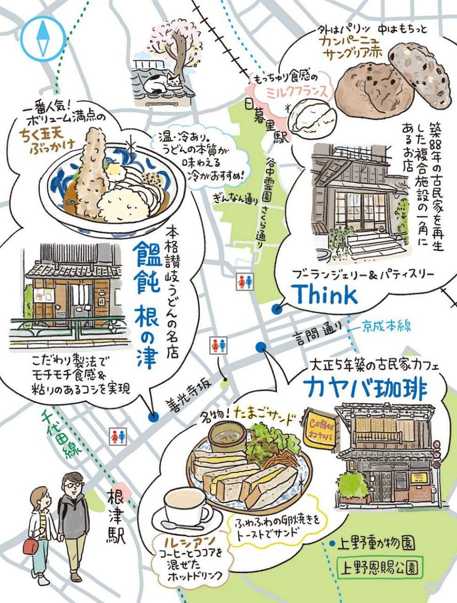今回は、静かな寺町の雰囲気と下町らしい活気が共存する谷中へ。大正5年(1916年)築の古民家カフェ「カヤバ珈琲」、ブーランジェリー&パティスリー「Think」、本格讃岐うどんの名店「饂飩 根の津」をご紹介します。