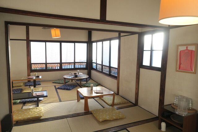 カヤバ珈琲の2階にあるお座敷席。畳の上にちゃぶ台が置かれた空間は心地よく、まるでおばあちゃんの家に遊びに来たような安心感があります。