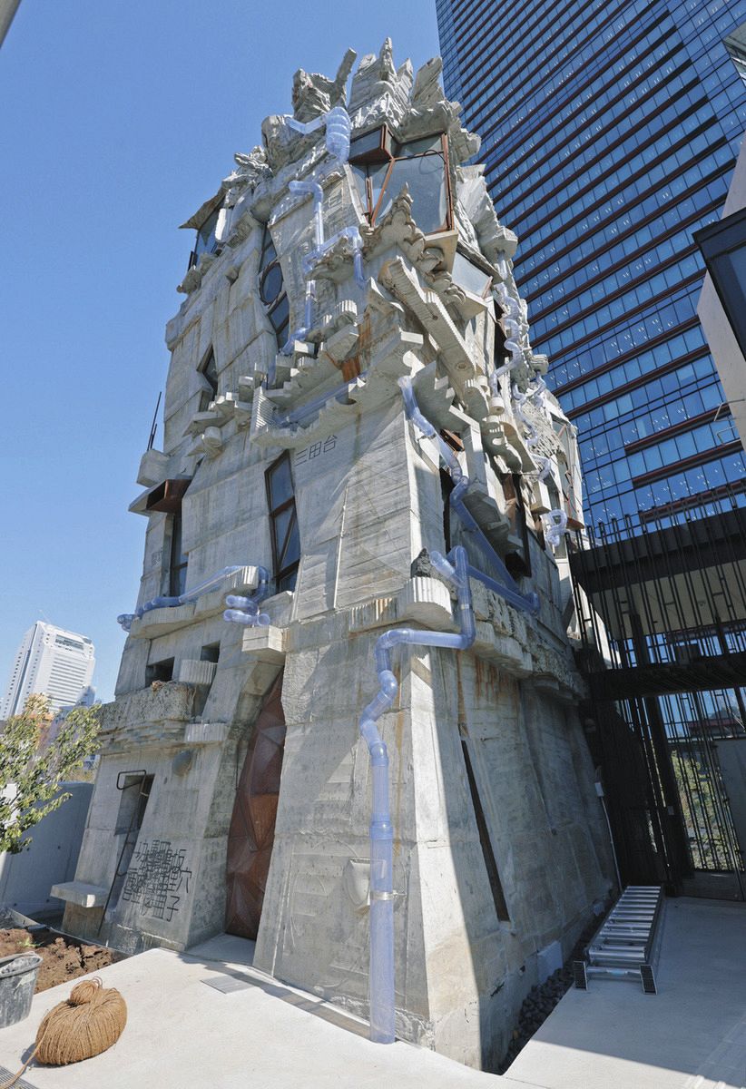 20年の歳月をかけて完成した「蟻鱒鳶ル」=東京都港区三田で(隈崎稔樹撮影)