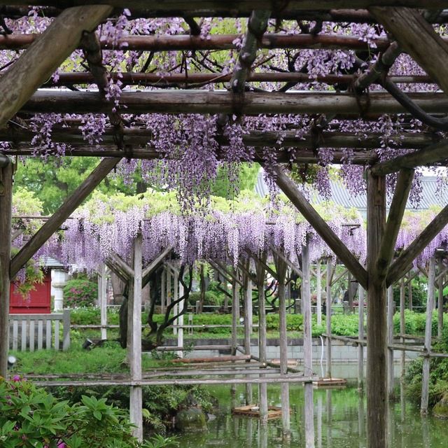藤の季節の楽しみは、花そのものにとどまりません。参道を歩けば、咲き誇る藤と太鼓橋の景色に江戸から続く春の空気を感じられ、境内のあちこちに設けられた休憩所で立ち止まりながら香りや景色をゆっくり楽しむこともできます。写真を撮ったり、水面に映る花房の美しさを眺めたり、昼と夜で表情を変える藤棚の景観に目を奪われるひとときは、春の訪れを肌で味わう時間になります。