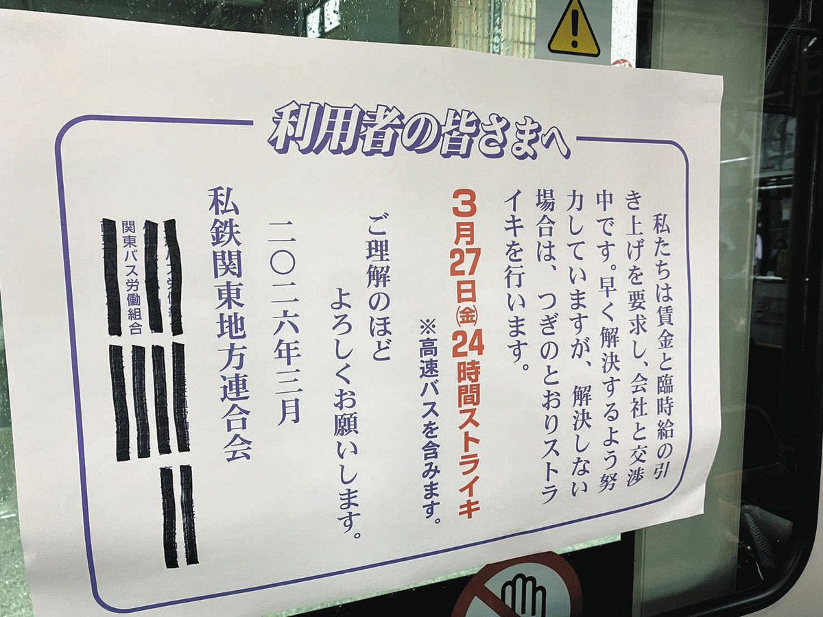 労組側は、他産業よりも平均賃金が低く離職者も多いなどと待遇改善を求め、「持続可能な公共交通を守るために、賃金の引き上げが必要」と訴えていた。(足達優人)