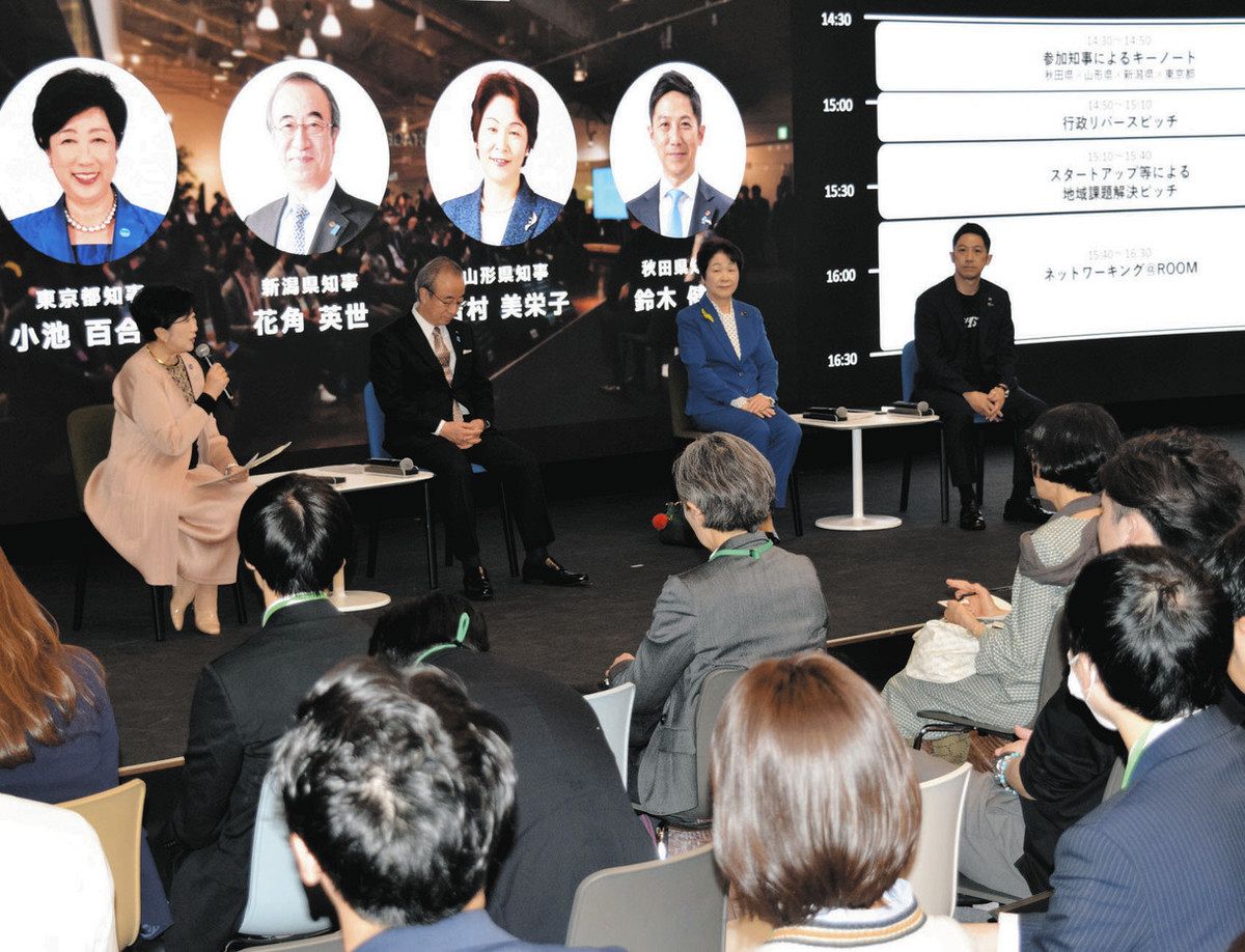 TIBは都が運営するスタートアップ支援の拠点。イベントは、同じような課題を抱える複数の自治体が参加する形としては初めて開催された。都と秋田、山形、新潟の3県が参加し、大雪への対応や農業の持続可能性、クマなどの獣害対策などをテーマにした議論や提案があった。