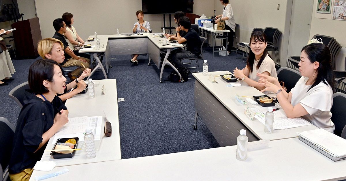 東京新聞創刊140周年感謝イベント「まるっと東京新聞 ― 読者の皆さんありがとう」と銘打ち、東京新聞は10日、本社(千代田区内幸町)で、記者が日替わりで登場する「記者サロン」の一環として、子育てウェブメディア「東京すくすく」を担当する記者らによるランチ交流会を開いた。