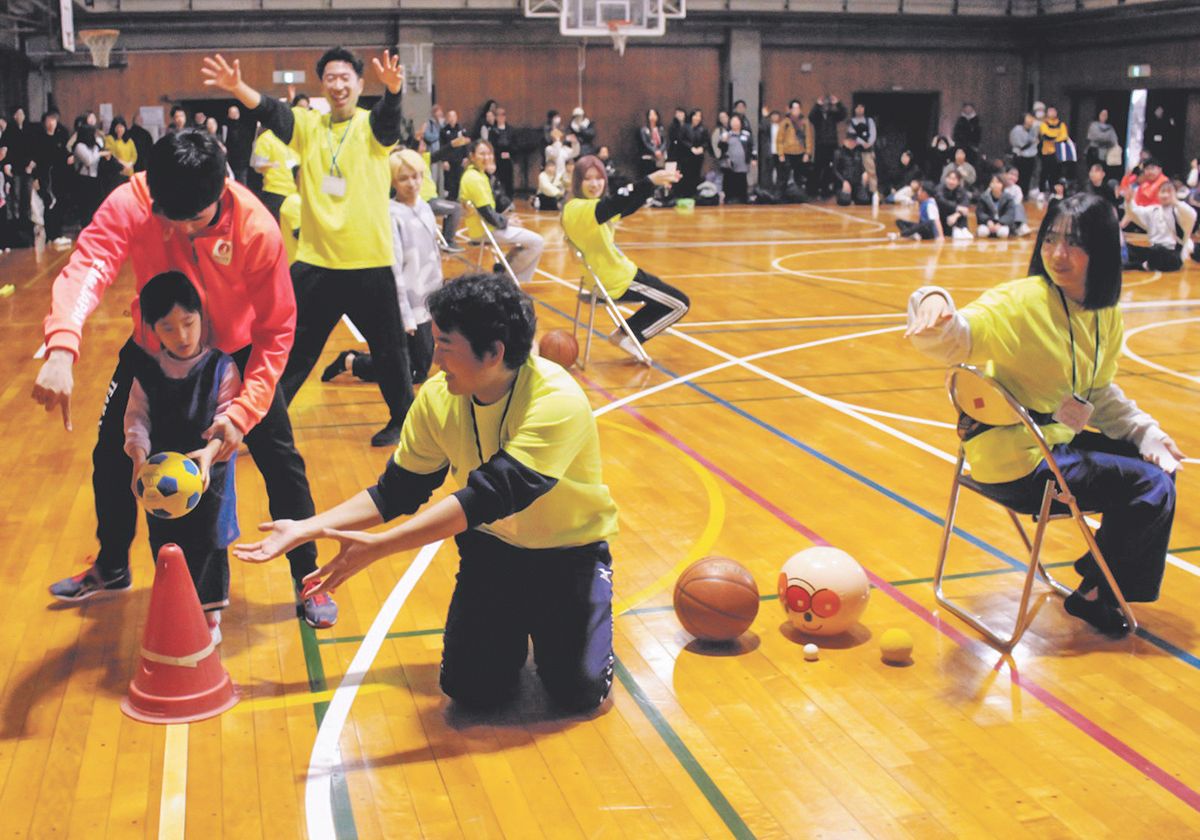 大和田さんは首都圏の大学生による団体「わくわくデフスポーツ体験実行委員会」の委員長を務める。「バスケやりたい子はこっち!」。前日の21日とこの日の2日間、メンバーの12人を中心に、当日ボランティアの学生約50人も受け付けや誘導を担った。